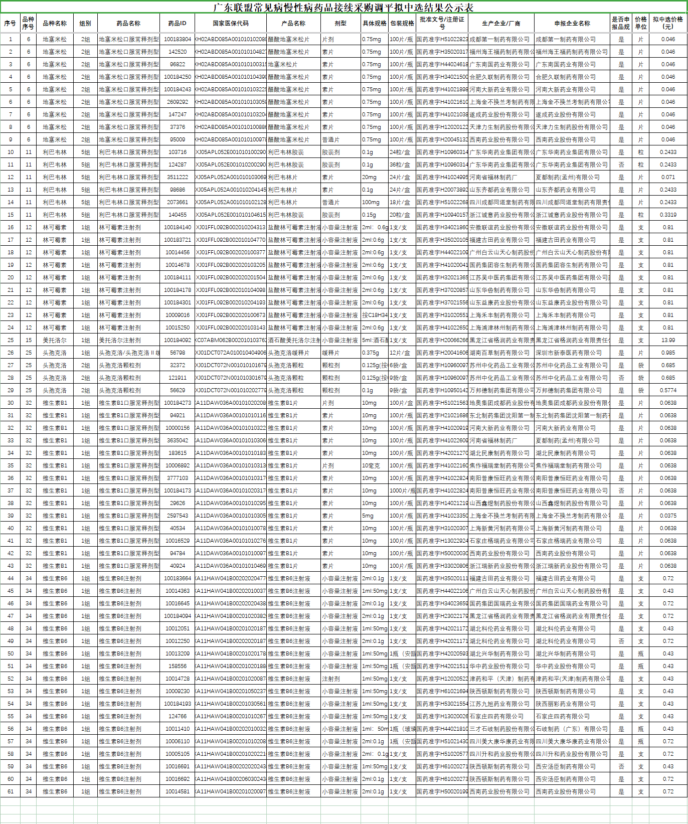 附件:广东联盟常见病慢性病药品接续采购调平拟中选结果公示表.xls 公示期仅3天 企业需抓紧核查结果