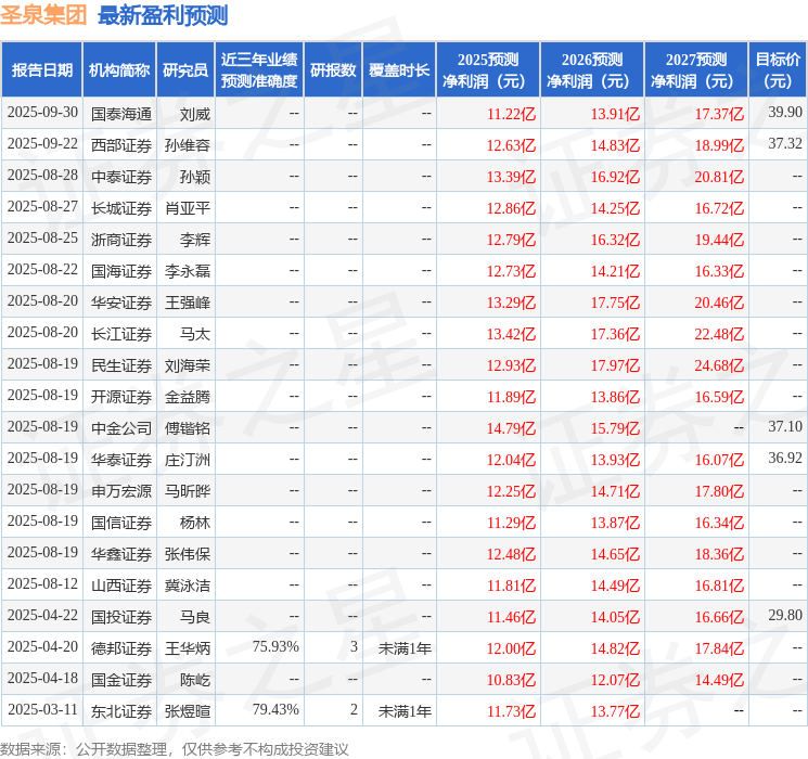 最新盈利预测明细如下: