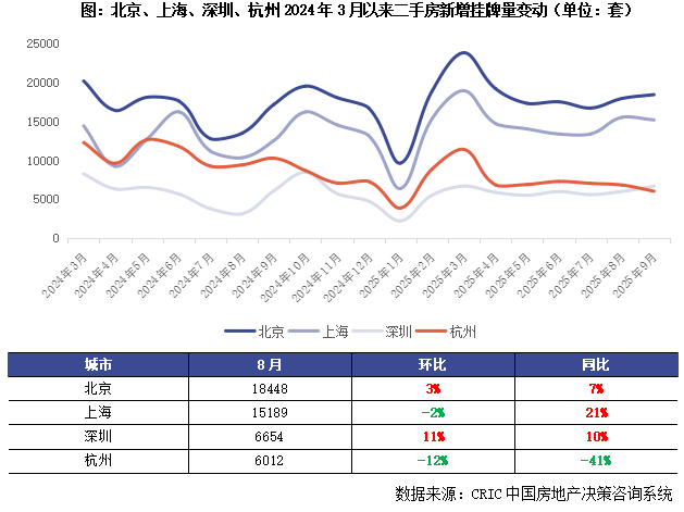 京深新增二手挂牌套数同环比双增仅杭州波动下行