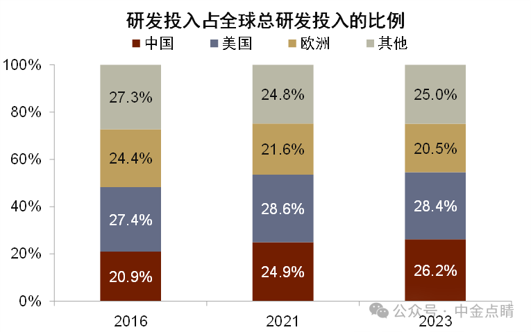 图表1:中国研发投入占全球比例不断提升(按购买力平价计算)