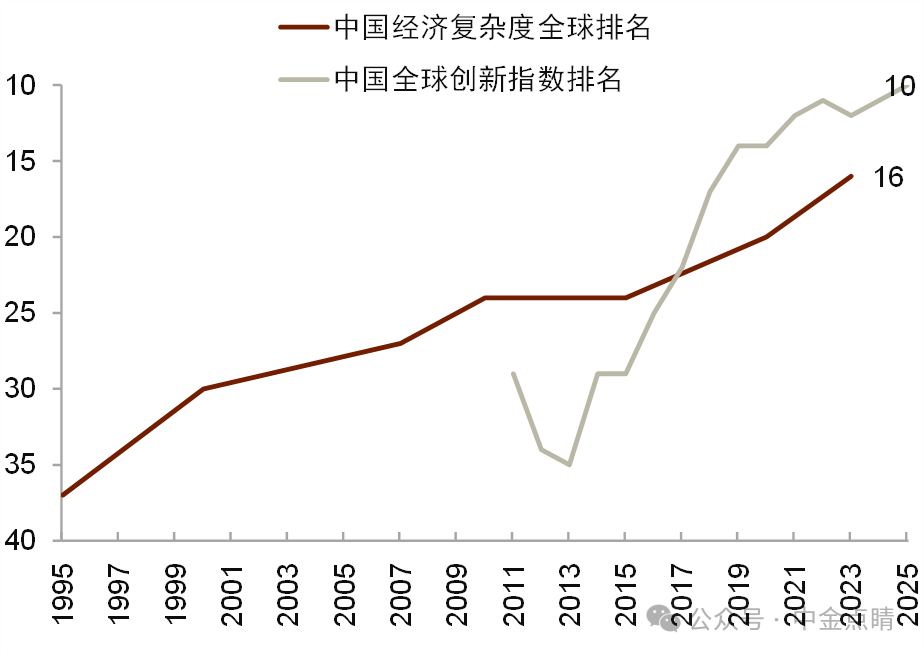 对科技创新的追求上升一个层次,“科技自立自强水平大幅提高”,科技水平要“抢占制高点”。在经历“十四五”这几年的科技发展之后,根据WIPO的统计,2023年中国的研发经费投入(按照购买力平价折算)已经占到全球的26.2%,仅次于美国的28.4%,差距也仅有2.2个百分点[4](图表1)。《公报》提升了对科技创新的目标,明确提出要“抢占科技发展制高点”。