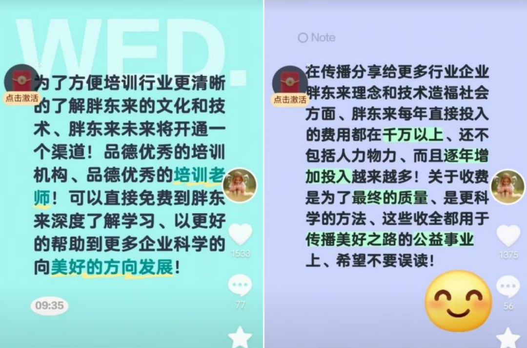 10月22日,于东来又发布消息,将为“品德优秀的培训机构和培训老师”,提供免费深度学习胖东来的机会;此外,东来哥将继续在网上进行免费的直播分享交流。