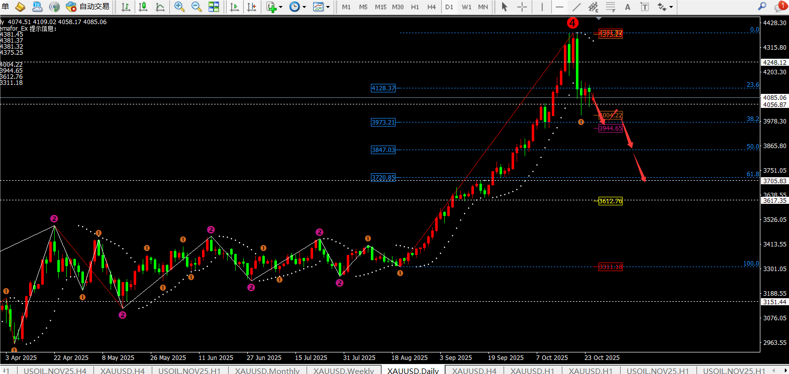任天成:10.27黄金4160分界点周初向3850运行今日3970进发