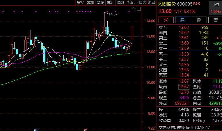 证券板块异动拉升,湘财股份一度触及涨停,中信证券、东兴证券、广发证券、国信证券跟涨。
