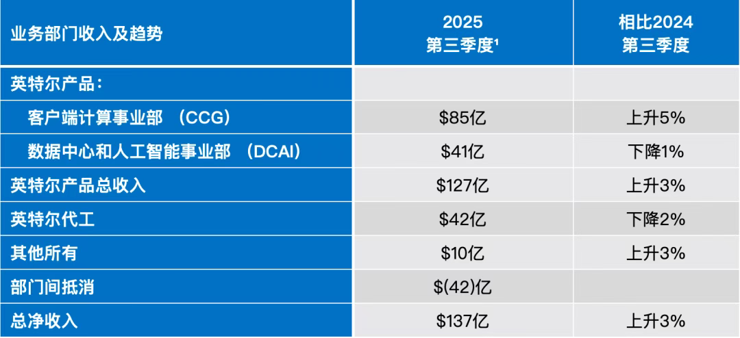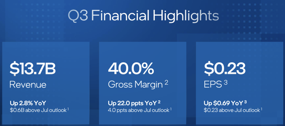 ● 英特尔第三季度营收137亿美元,同比增长3%;