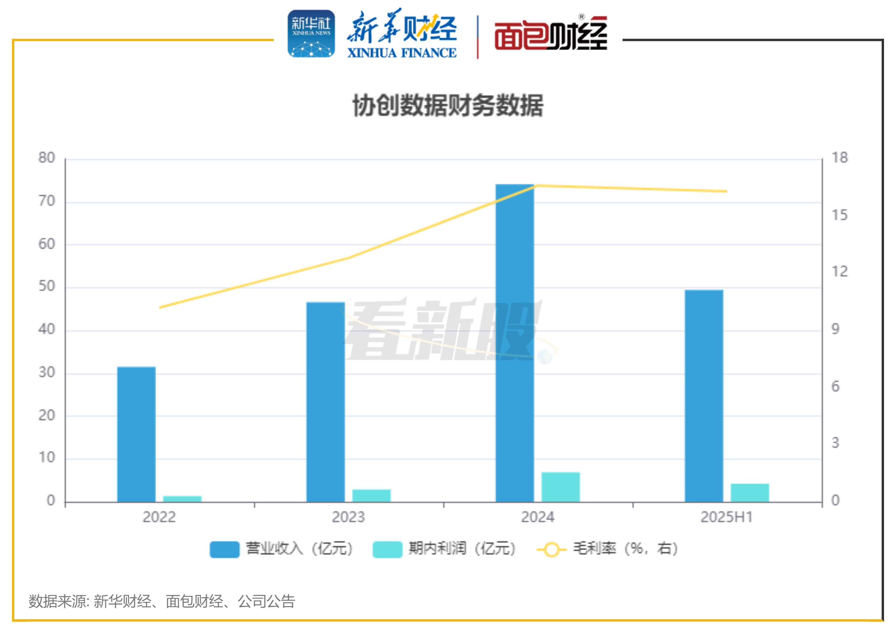 财务数据显示,协创数据近年营收保持稳健增长态势。2024年,公司营收为74.10亿元,同比增长59.13%;期内利润6.87亿元,同比增幅超140%。2025年上半年,业绩增长态势延续,实现营收49.43亿元,同比增长38.14%;期内利润4.22亿元,同比增长18.12%。