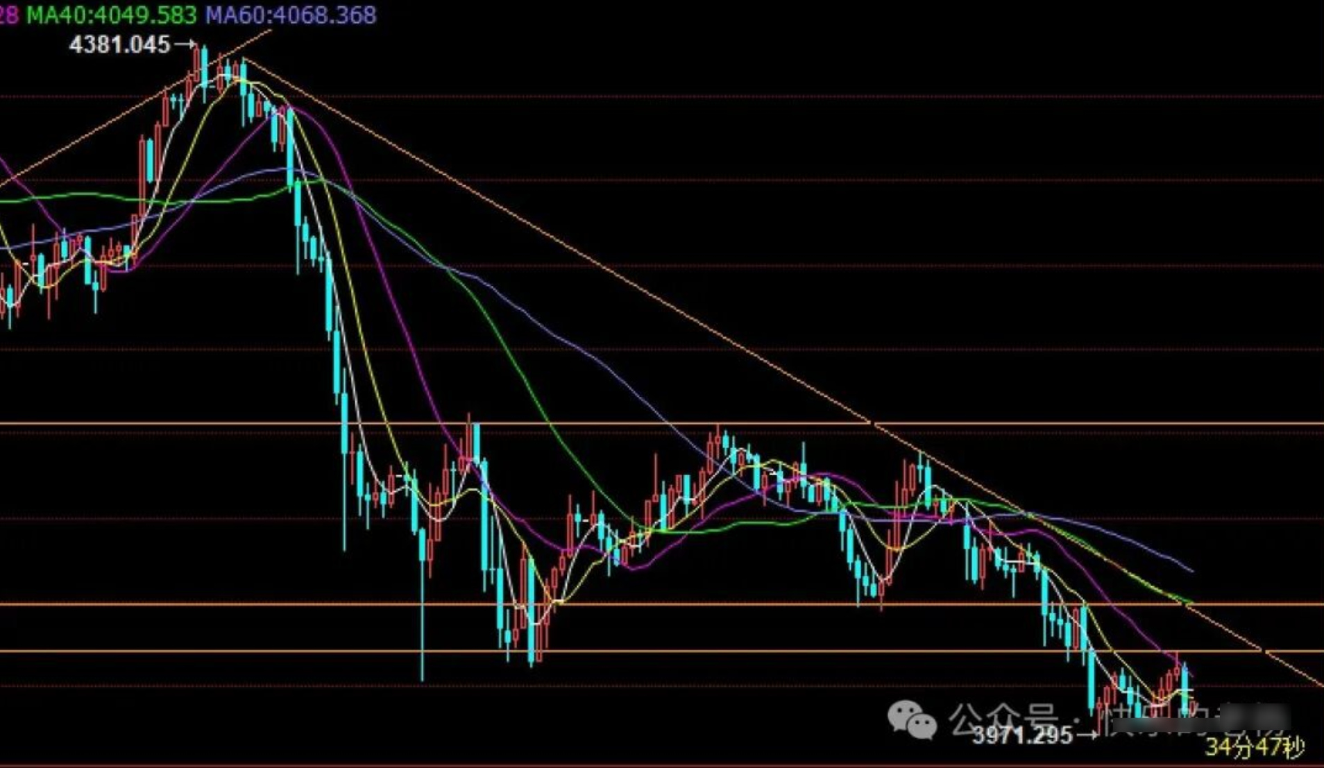 受中美和谈影响,昨天黄金低开低走,盘中虽然说一度反弹,但是最终也没能够再让4100美元关口。欧洲盘时段震荡向下破位4040-50区域,美盘时段向下发力跌破4000美元大关;最低至3971线之后反弹,日线以大阴线收盘。国内沪金,上海金也跌了20多块,自历史高点目前下跌接近100元!