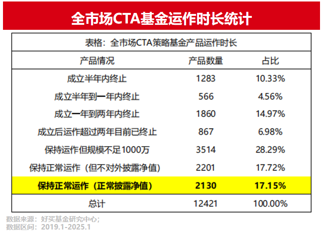 期货交易具有杠杆属性,且CTA管理人比拼风控能力与交易能力,这就使得CTA行业竞争激烈且淘汰率较高。
