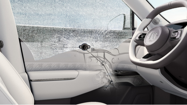 值得一提的是,区别于普通双层夹胶玻璃,焕新极氪7X采用外层3.5mm钢化玻璃+0.76mmPVB胶膜+ 内层1.1mm钢化玻璃的设计,表层压应力和内部张应力形成力学平衡,主驾安全破窗器可以轻松击穿。