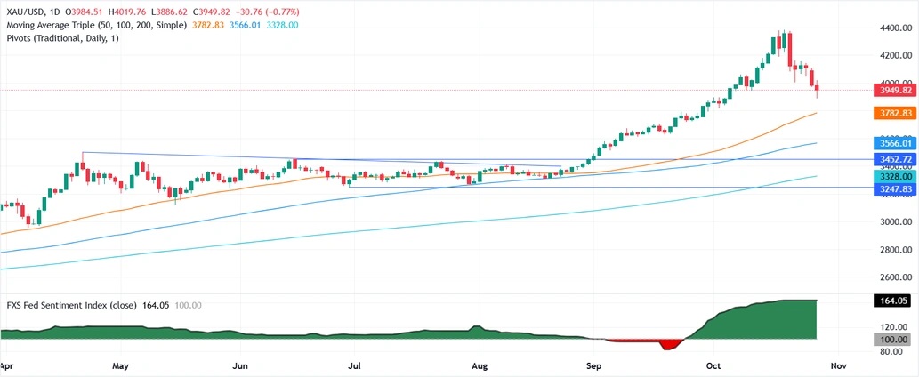 美国银行将其第四季度金价预测下调至3800美元/盎司。他们表示:“市场已经超买,最终导致了本周的回调。”