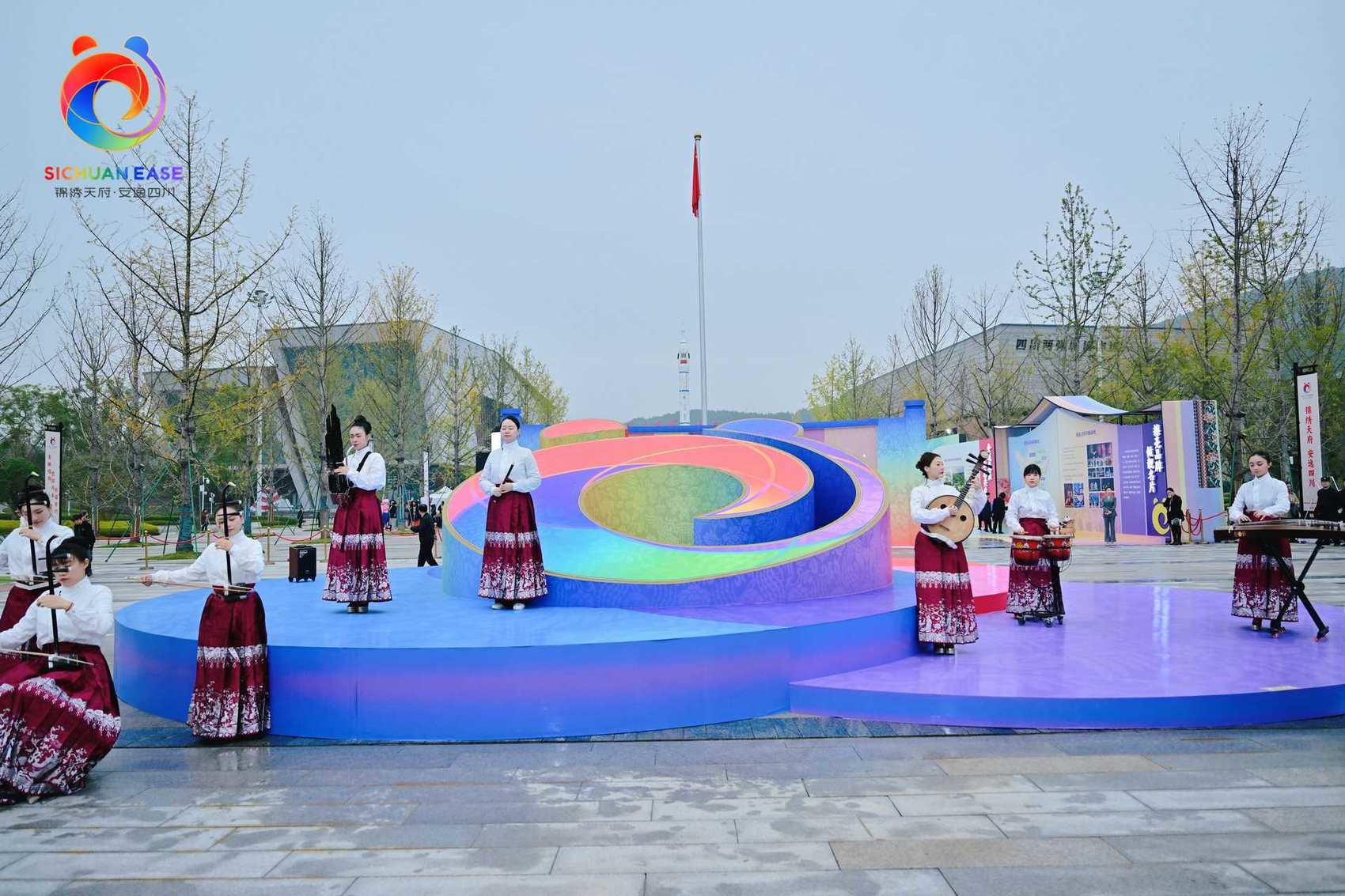 巨型“锦绣天府・安逸四川”品牌标识构筑起视觉核心舞台,“天姿国乐”旋律悠扬流淌,“诗”和“远方”的四川画卷由此开启……10月29日,作为2025四川省文化和旅游发展大会暨第十一届中国(四川)国际旅游投资大会系列活动之一,“锦绣天府·安逸四川”文旅融合主题展在绵阳市梓潼县四川两弹城博物馆外广场正式开展。
