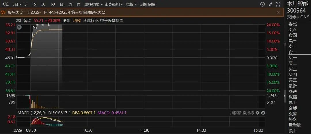 盘初6G概念异动拉升,本川智能直线拉升盘中“20cm”涨停,世嘉科技、信科移动、普天科技、硕贝德等冲高。