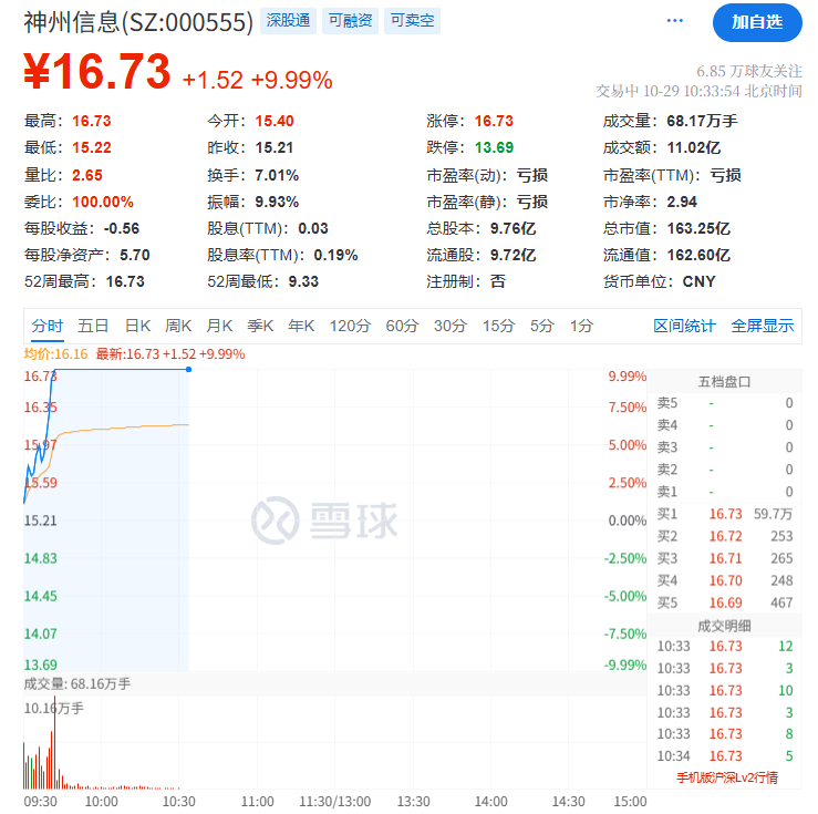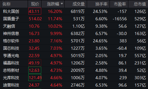 此外,科大国创、国盾量子涨幅居前,神州信息直线拉涨停。