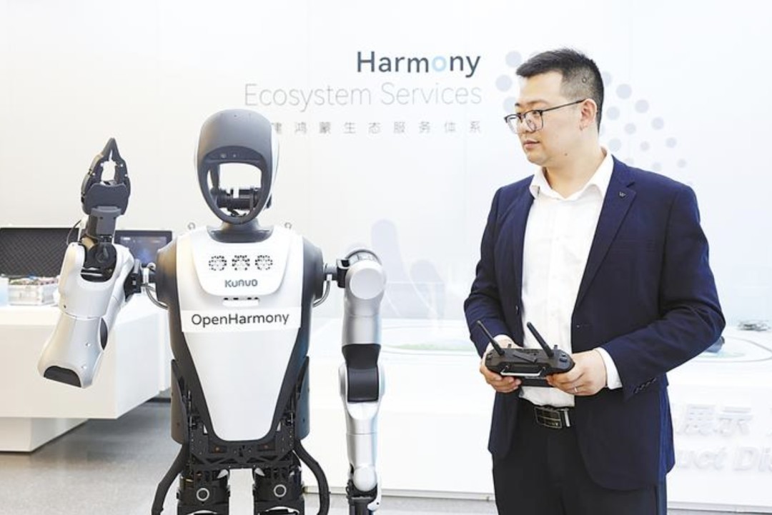 据微信公众号“中国光谷”消息,10月28日,鸿蒙生态(武汉)创新中心的智慧展厅,国内首款搭载开源鸿蒙系统的机器人“夸父”惊艳亮相,吸引不少参观者与其互动。“夸父”基于开源鸿蒙开发,打破了国外技术垄断,正加速构建全自主可控的机器人生态。