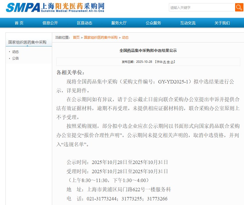在公示期间,如果你对拟中选结果有异议,一定要在公示截止日前向联合采购办公室提出申诉,并且要提供合法有效的证据材料。要是逾期才提出,或者没有提供相应证据材料,联合采购办公室原则上可是不予受理的,所以大家千万不要错过时间,证据也要准备充分。
