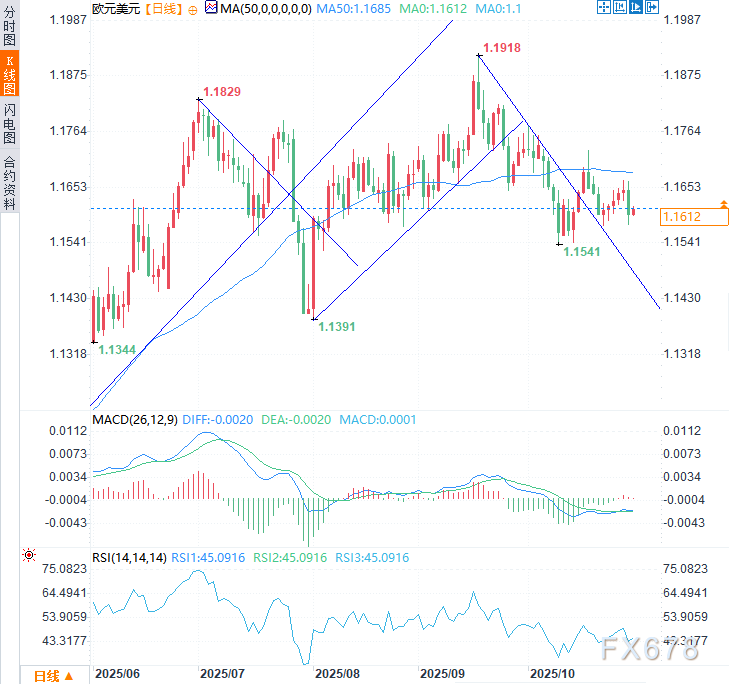 上行方面,1.1650仍是首要阻力位,50日均线(MA,1.1685)恰位于其上方——这两道关卡对多头构成严峻挑战。若汇价能突破并站稳50日均线(1.1685)上方,在升至1.1900之前将无重大阻力位。