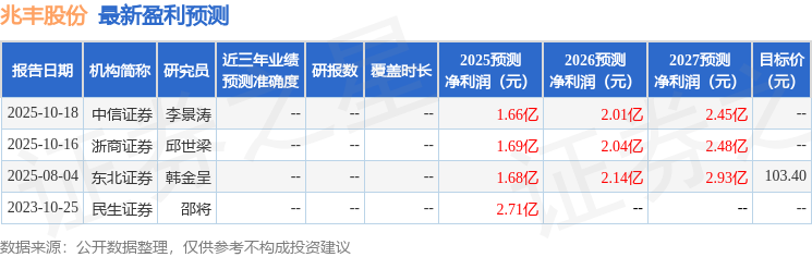 证券之星消息,2025年10月30日兆丰股份(300695)发布公告称公司于2025年10月29日接受机构调研,博道基金彭宗云、华泰柏瑞赵楠、华泰证券宋亭亭、华西证券于特 庞博、华源证券陈佳敏、嘉合基金卢雨涵、交银保险曹锐钢、金信基金黄飙、君康人寿保险宋强磊、开源证券孟鹏飞、开源资管王炳辉、创金合信基金张小郭、鲲鹏恒隆投资彭飞虹、六妙星(北京)私募苗飞、诺安基金王晴、鹏华基金张卓然、平安基金张荫先、上海贵源纵华雷、上海贵源投资纵华雷、上海杭贵投资饶欣莹、上海睿亿陈海华、上海新传奇私募黄成略、东方财富周旭辉 杨安东 唐硕 李京波、上海烜鼎孙虞、上海烜鼎资产孙虞、上海准锦投资姜啸昆、尚诚资产黄向前、深圳市金友创智胡光美、西部证券乐智华、象舆行投资徐晓浩、谢诺辰阳私募王桂兴、阳光资产李曦辰、宜宾发展创投邹和怡、广州翔云私募赵玮、圆信永丰基金钱嘉隆、长江证券汪中昊、招商财富周荃、浙江英睿投资王俊杰、浙商证券周艺轩、中杰(厦门)投资李文杰、中金公司尹航、中泰证券刘欣畅、中天汇富基金慕陶 古道和、中信保诚孙浩中、国盛证券彭元立、中信建投白舸、中信证券安家正 李景涛、国信证券孙树林 唐旭霞、杭州红骅投资陈杰、华安证券刘千琳、华创证券于公铭参与。