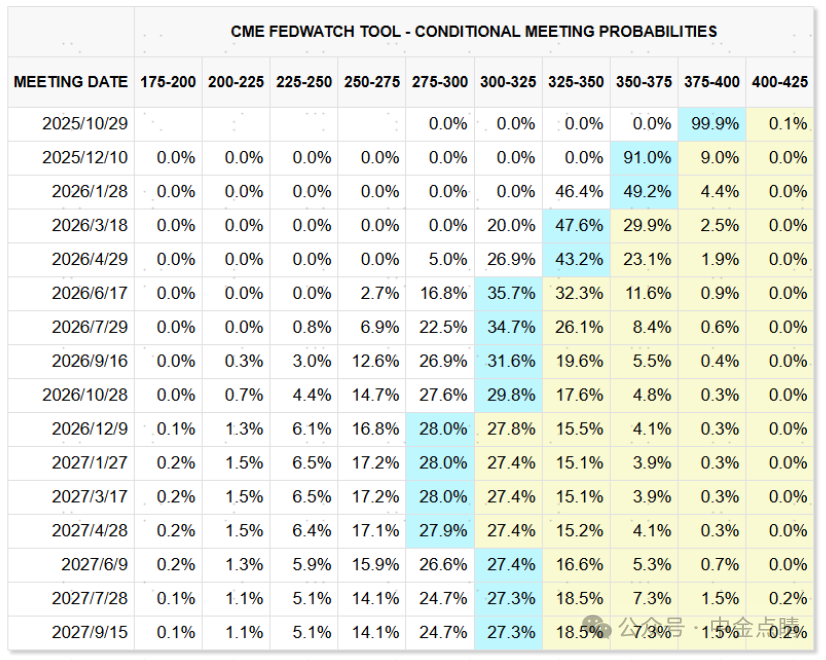 图表:会议前CME利率期货隐含的10月降息概率近100%