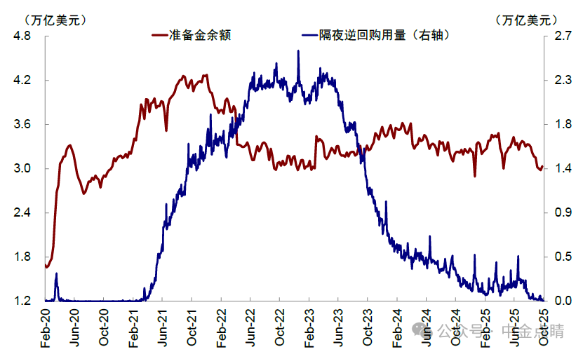 图表:隔夜逆回购接近耗尽,将无法继续对冲缩表