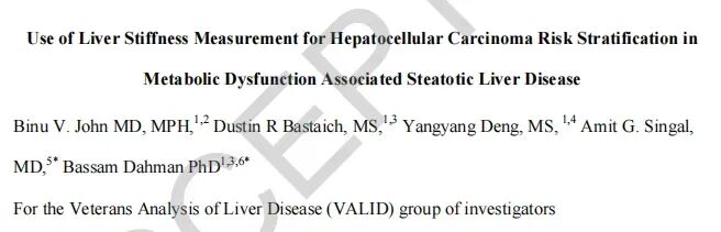 [1] John B V, Bastaich D R, Deng Y, et al. Use of liver stiffness measurement for hepatocellular carcinoma risk stratification in metabolic dysfunction–associated steatotic liver disease[J]. Hepatology, 2025. DOI:10.1097/HEP.0000000000001498.