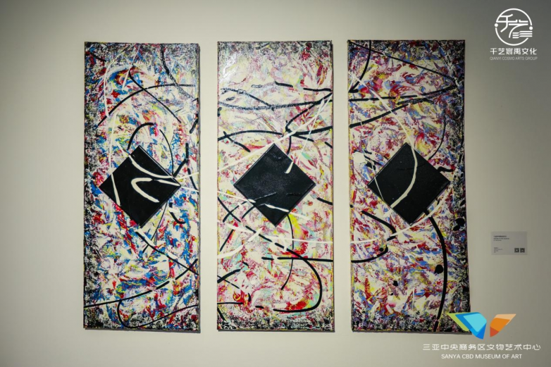 在“交汇之界”展区,木兰的《无序中的有序》系列作品以几何碎片重构视觉秩序,如同海南岛屿在季风中被不断重塑的自然边界。油画与综合材料在她的手中交织,凝固了边界“即将溶解”的瞬间。