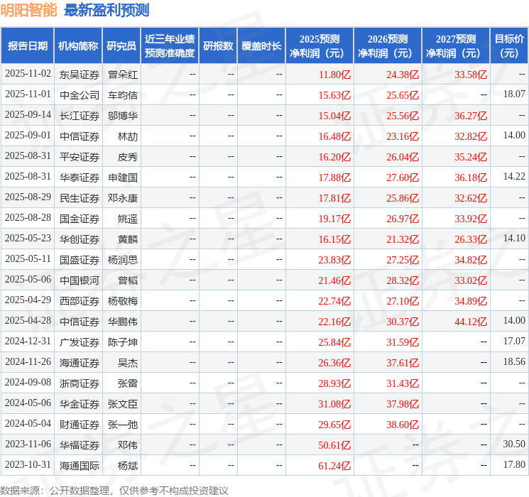 以下是详细的盈利预测信息: