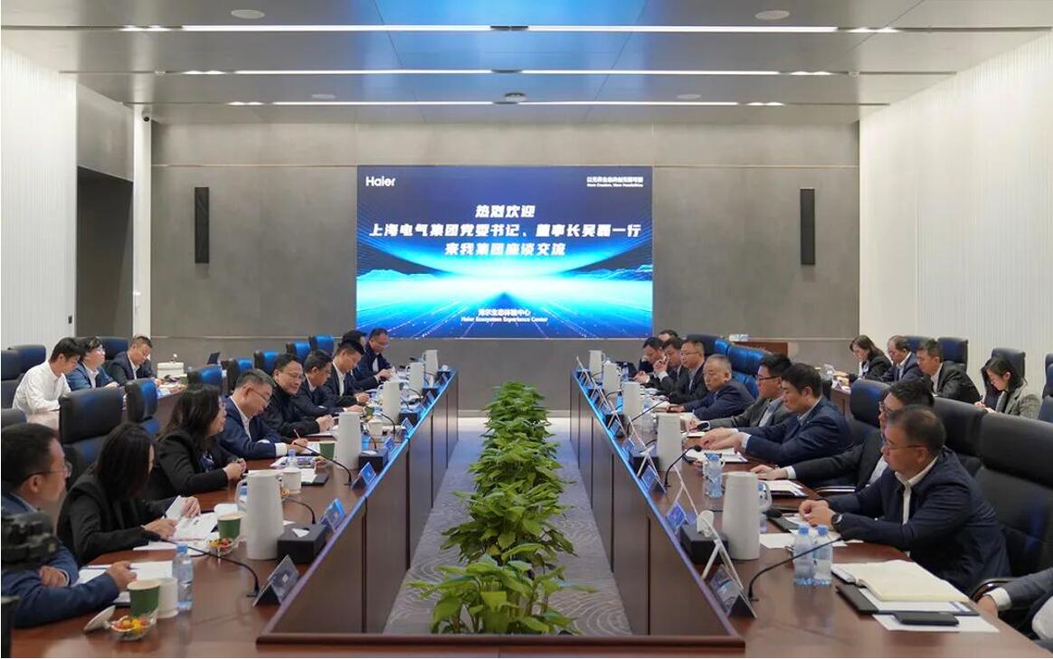 10月29日上午,上海电气集团党委书记、董事长吴磊率队拜访海尔集团,与海尔集团董事局副主席、总裁梁海山举行会谈,双方围绕核心技术协同、全球市场拓展、零碳生态共建等达成诸多共识。