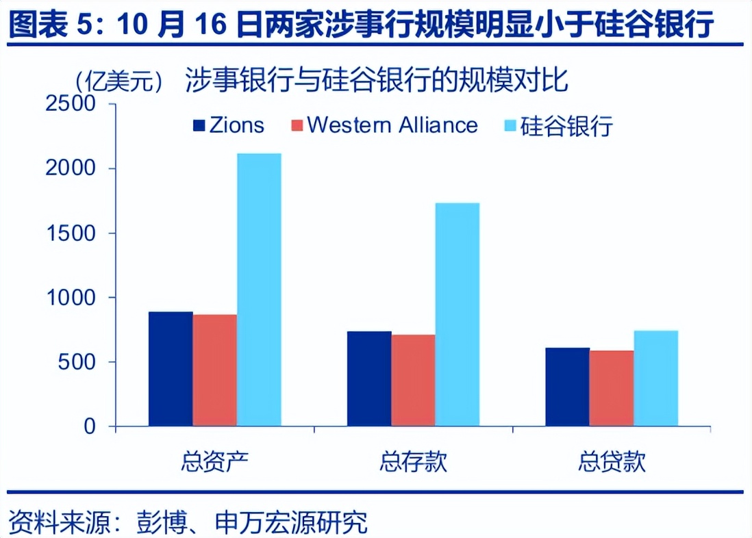 事件发生后,市场一度将之与硅谷银行风波类比,但实际上二者的冲击并不完全可比。1)涉事银行相较于倒闭前硅谷银行体量更小。2)涉事事件更像个别欺诈案例引发信用损失,与当年区域银行普遍存在的久期错配情况不同,或难引发系统性风险。3)涉事银行的负债端也更为健康。