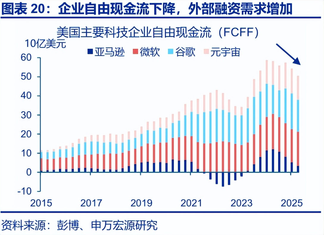 然而,市场的担忧也并非空穴来风,私募信贷市场已“裂痕初现”。一方面,2020年后新增PIK(实物付息条款)贷款中,非应激性PIK(非原始条款包含的PIK)占比显著上升;这类贷款比例的上升,说明借款人现金流不足,只能被迫通过修改协议以短期缓解流动性压力,反映了底层现金流的边际恶化。另一方面,当前私募信贷的投向过度集中于科技行业,一旦美国科技企业盈利超预期幅度下降、资本开支增加科技企业自由现金流的消耗,过高的科技行业敞口或带来更高的风险。