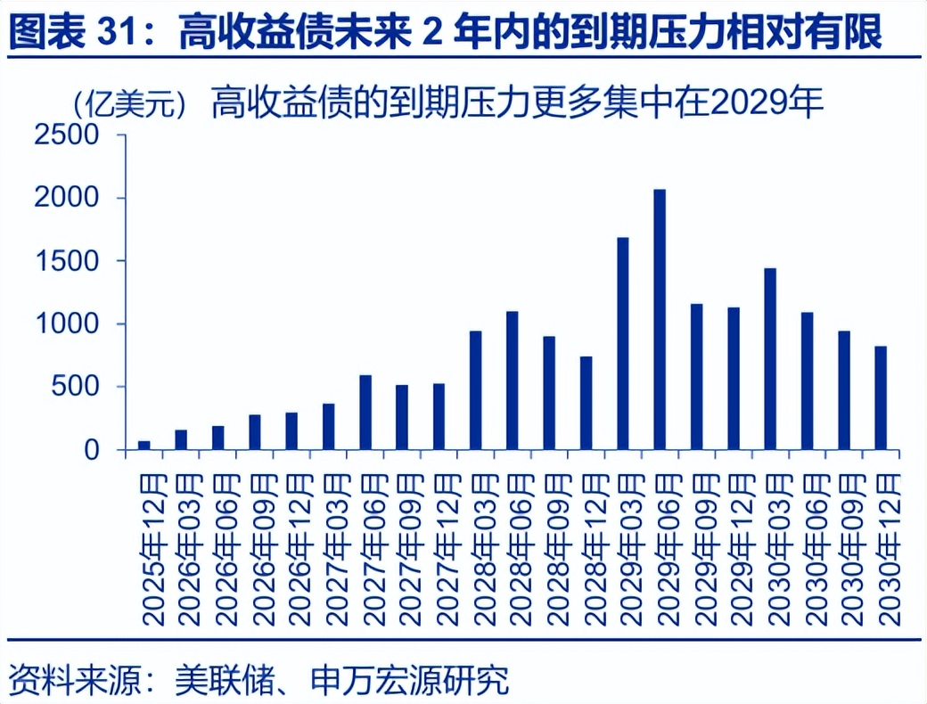 最后,过去几年屡屡引发市场担忧的高收益债风险,短期或相对可控。可适当关注两点风险:第一,最低评级的发行人进入一级市场的门槛较高,或导致再融资风险集中;第二,一旦遭遇经济放缓或流动性收紧,市场如大幅重估信用风险,或导致利差扩大、引发高收益债市场动荡。
