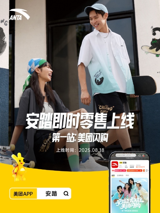 而这一波入驻潮中,安踏无疑充当了开路先锋的角色。早在8月19日,安踏就率先与美团闪购达成战略合作。据了解,目前超过1200家安踏门店已入驻平台,双方计划在今年年底将合作门店数扩展至5000家,实现全国超过300个城市的全面覆盖。