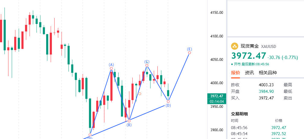 随着上周美联储如期降息25个基点之后,美联储主席鲍威尔表达了目前通胀以及就业市场的状态的担忧,同时随着美政府超历史记录的停摆,导致一些官方数据进入真空期,也是加剧了市场的担忧,更多的美联储官员认为后续降息需要更加谨慎,所以整体鹰派的预期提振了美元,压制了黄金的反弹,只是中美详细的贸易磋商取得的进展并不如市场预期那么良好,地缘政治的不断冲突也是再度给予黄金支撑,上周多次跟大家分享的看探底回升,回踩接多的思路都是完美兑现到了目标位,上周五黄金冲高后在强势美元的压力下再度回落,目前良性调整的格局还在延续,四小时级别良好的调整浪,目前三浪调整到位看好后续上涨,操作上回踩继续接多为主。