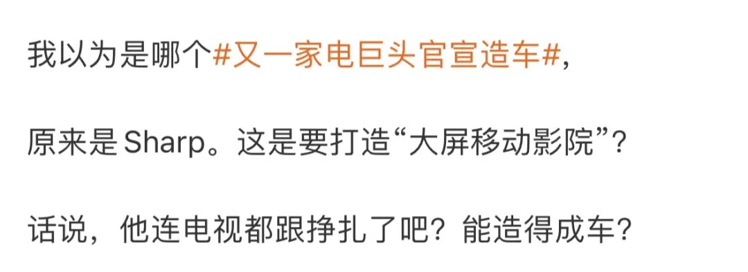 而对于夏普造车,网络上评价褒贬不一,有人认为,「他连电视都在挣扎了吧?能造得成车?」