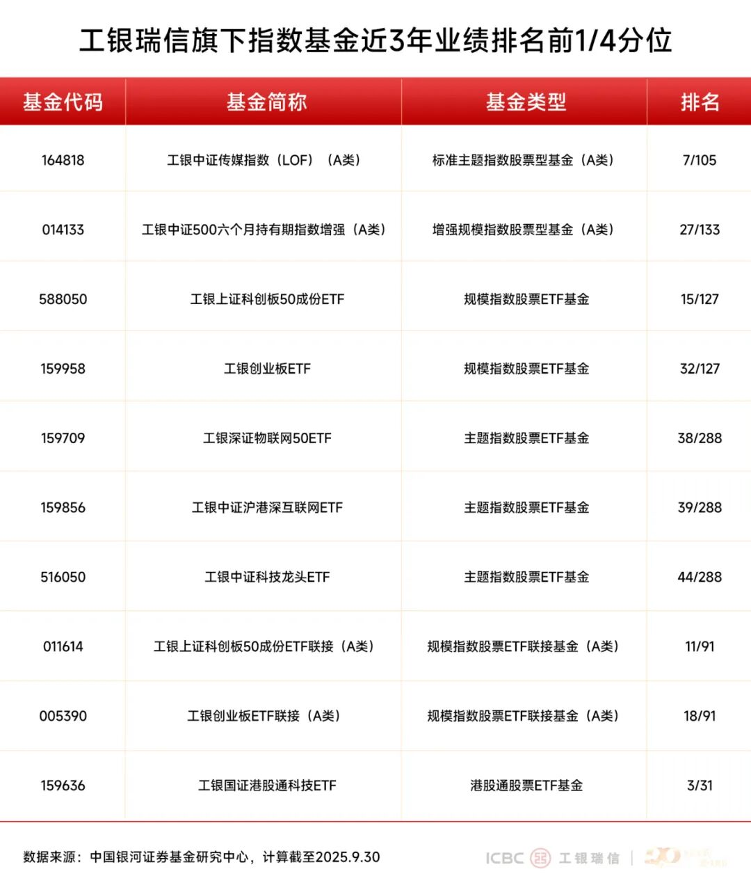 2025年前三季度A股市场在政策利好与经济复苏预期的双重驱动下,呈现震荡上行态势,结构性机会持续涌现,面对复杂多变的市场环境,工银瑞信基金凭借前瞻性的市场研判和多元化的投资布局,在主动权益、固收、指数ETF等投资领域全面开花,以卓越的投研实力和产品布局,彰显了穿越市场波动的韧性与持续创造价值的能力。