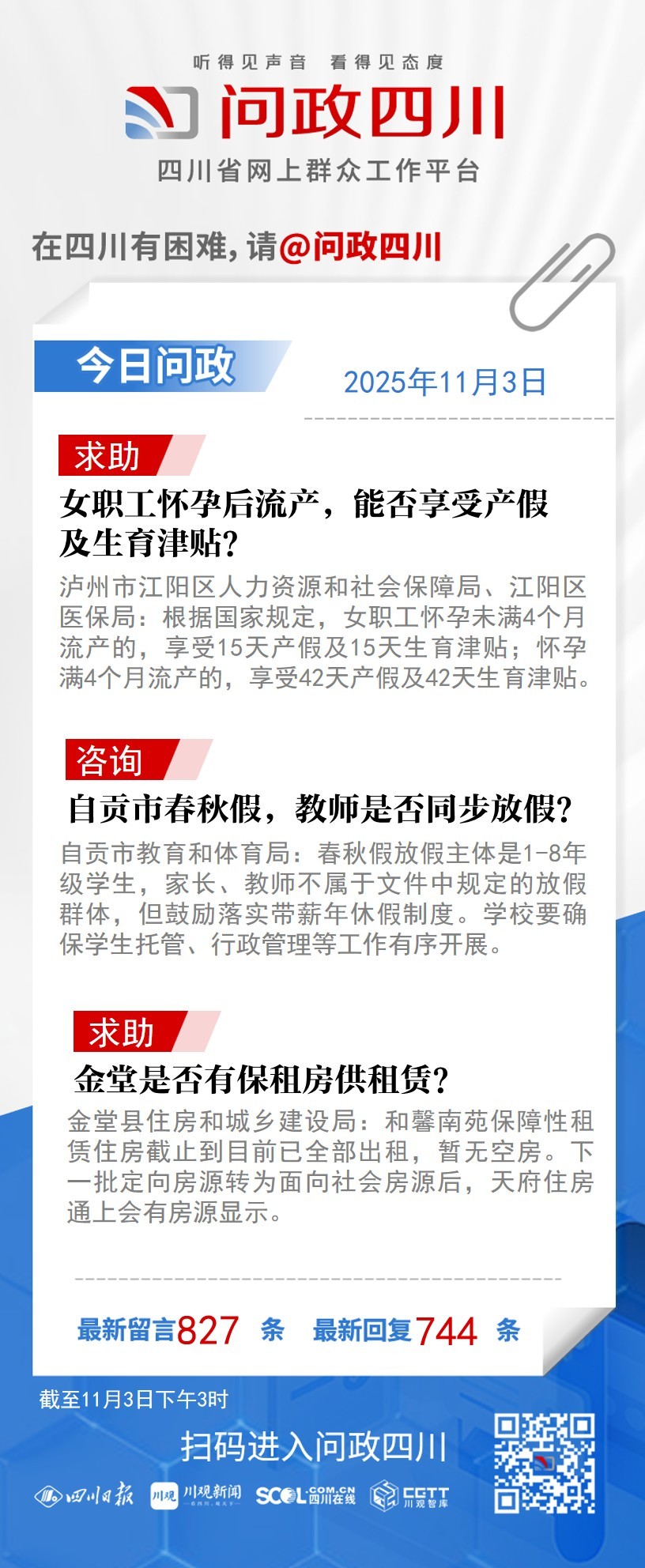 在四川有困难,找问政四川。如果您在四川遇到了操心事、烦心事、揪心事,请登录“四川省网上群众工作平台—问政四川”或拨打问政四川热线(028-96001)留言反映、求助或建议。我们将充分发挥平台的互动联系作用及舆论监督功能,第一时间传递民声,推动问题得以及时解决——听得见声音,看得见态度。