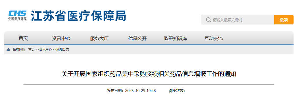 江苏省医疗保障局联合河南、广东等多省份医保局发布紧急通知,正式启动国家组织药品集中采购接续相关药品信息填报工作。