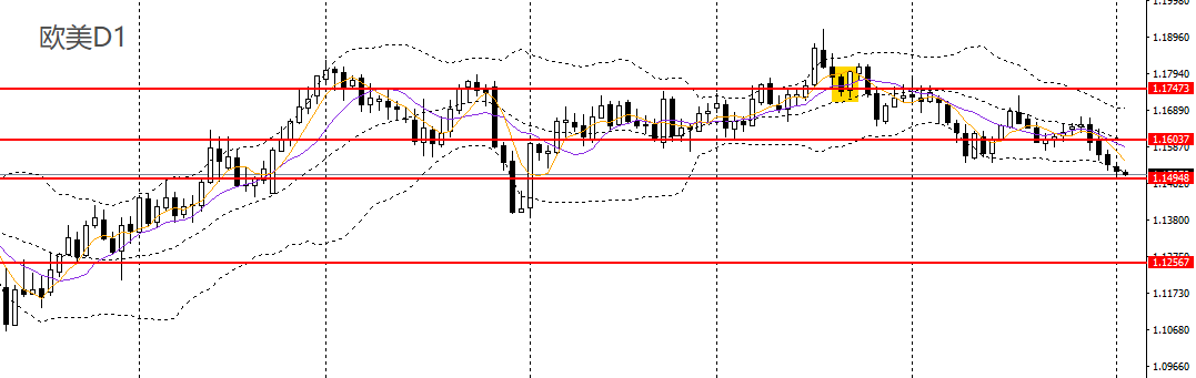 欧美昨日收小十字阴线,徘徊于日线布林下轨附近,4小时逼近1.15关口,短线走势依然疲软,1.1530附近承压可进空,1.15仍为关键节点,如继续跌破,后市预计将下探1.1460,如于1.15获得支撑,空单可暂时离场。