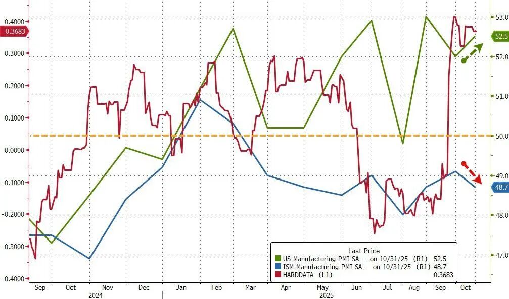 美国10月ISM制造业PMI指数为48.7,10月Markit制造业PMI终值52.5。