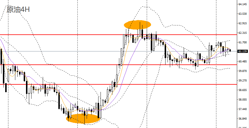 美原油昨日微幅收跌,日线RSI仍位于50左右,4小时继续守稳60关口支撑,多单仍可持有,后市预计将继续上探62。