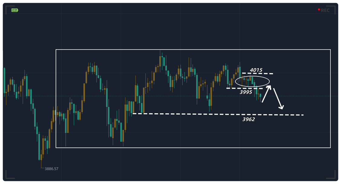 今日盘面仍需围绕4046-3915区间做文章,当前价格偏向区间上轨,还是依旧以反弹高空为主,注意这里空不是几斤跟进空——前面多次回落均是在反弹蓄力后出现,故今日做空依然要等待充分反弹之后。重点关注两个关键压制点位:3995顶底转换位与4005昨日夜间起跌点,视情况布局回落;日内多空分界点参考昨日晚间高点4030,下方支撑重点留意3962的得失情况。