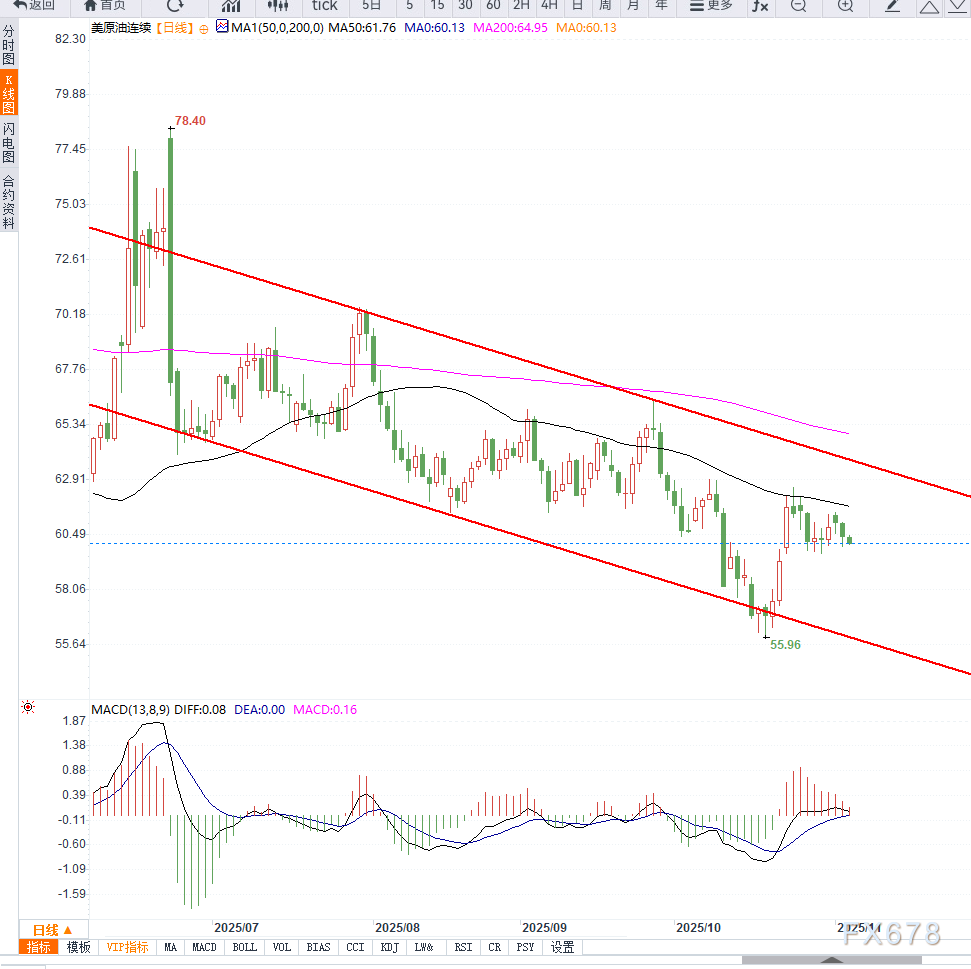 除非WTI连续突破62美元以上并收复关键均线,否则油价仍可能在60美元附近震荡偏弱。