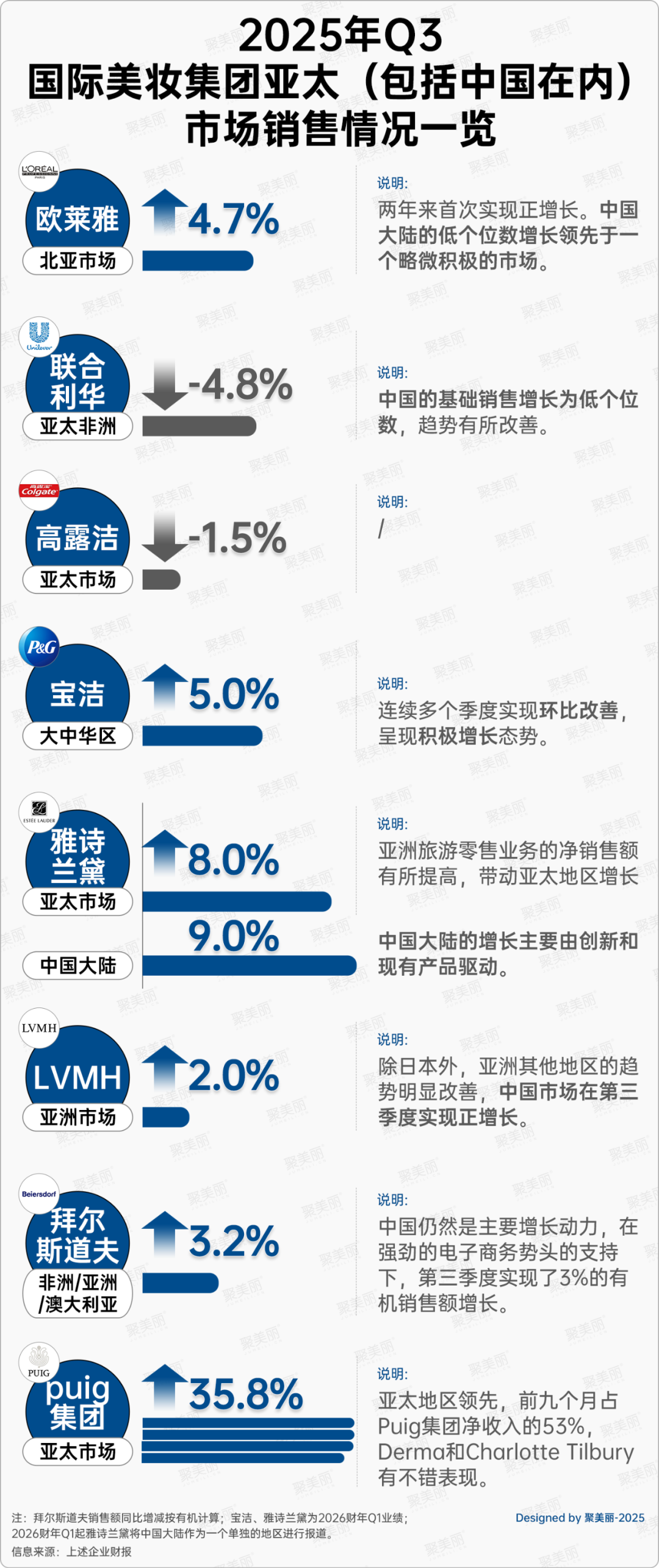 5、多个国际美妆集团亚太复苏,中国市场实现正增长;