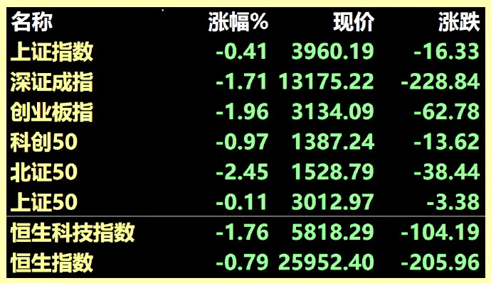 特斯拉收跌5.21%、AMD收跌3.70%、在美台积电收跌3.55%、费城半导体收跌4.01%……大票中仅苹果微涨0.37%。