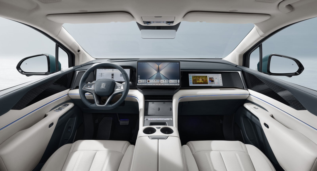 来到车内,内饰上就基本与现款车型保持一致,仍是“四水归堂”的设计语言,还有15.6英寸的中控屏,12.3英寸全液晶仪表盘、12.3英寸副驾驶娱乐屏,并辅以流媒体内后视镜与HUD抬头显示系统。
