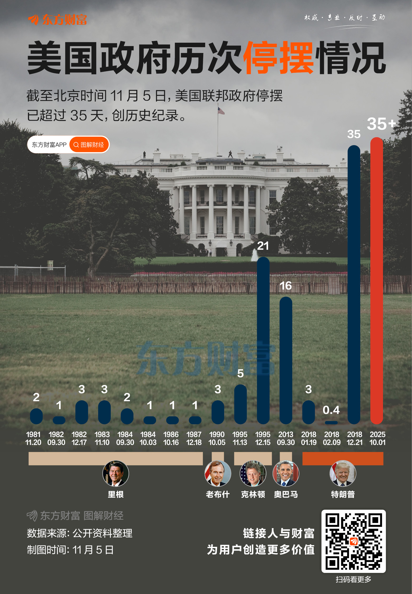截至北京时间11月5日,美国联邦政府“停摆”已进入第36天,打破2018年年底至2019年年初“停摆”35天的历史纪录,成为美国持续时间最长的政府“停摆”。
