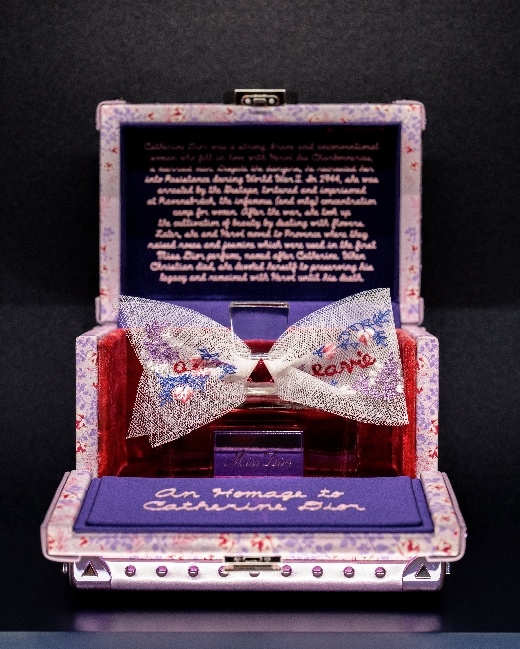 最后,在本次进博会中,还特设了一座“LVMH 迷你博物馆”,集中呈现集团旗下品牌的经典佳作与创新匠艺。迪奥于此呈献两款代表作品:其一为中国艺术家鞠婷赋新演绎的经典LADY DIOR手袋,该作品灵感源自动态艺术的表现原理,由起伏波动的面板构成,营造出动感十足的律动效果与视觉错觉,专为2025年度的“DIOR LADY ART #10”艺术家限量合作系列打造;另一件为美国艺术家朱迪•芝加哥(JUDY CHICAGO)为迪奥小姐香水创作的香氛收藏箱,箱体饰以繁花图案与春意色彩,致敬迪奥先生的妹妹、迪奥小姐香水的永恒缪斯卡特琳娜•迪奥(CATHERINE DIOR)。