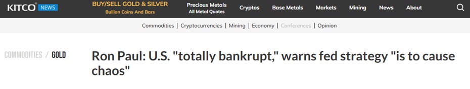 FX168财经报社(亚太)讯美国政坛大佬、前国会议员罗恩·保罗(RonPaul)宣称,美国“在道德和财政上完全破产”,并在接受KitcoNews的广泛采访时表示,国家的1.9万亿美元赤字是一个“债务螺旋”,最终将“用虚假货币偿还”,公民应“为即将发生的重大事件做好准备。