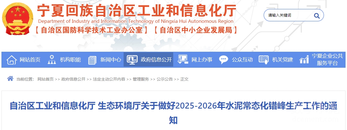 11月5日,宁夏回族自治区工业和信息化厅、生态环境厅发布《关于做好2025-2026年水泥常态化错峰生产工作的通知》要求,全区所有水泥熟料生产线(两部委错峰通知明确要求)冬春季采暖期:自2025年11月15日零时至2026年3月31日24时实行错峰生产,共136天;夏秋季错峰生产暂定为80天。