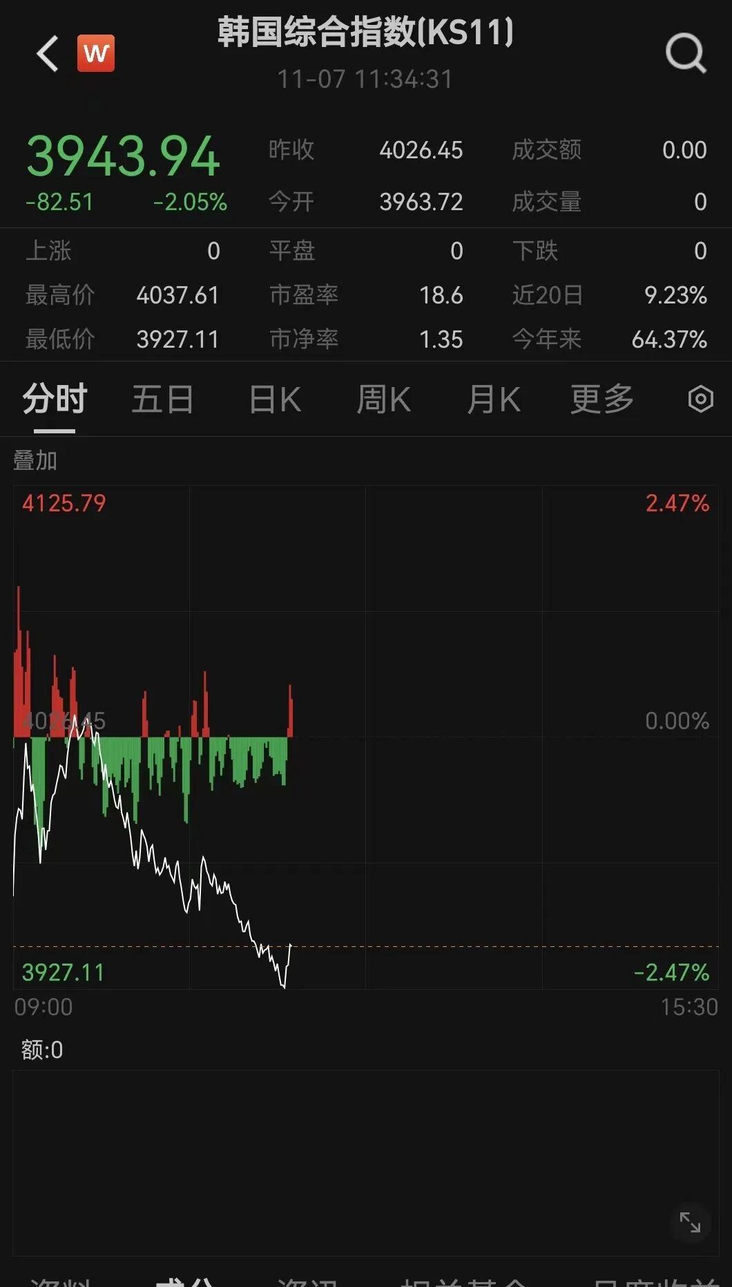 此外,韩国股市低开高走,韩国KOSPI指数一度翻红,随后快速跳水,现跌超2%