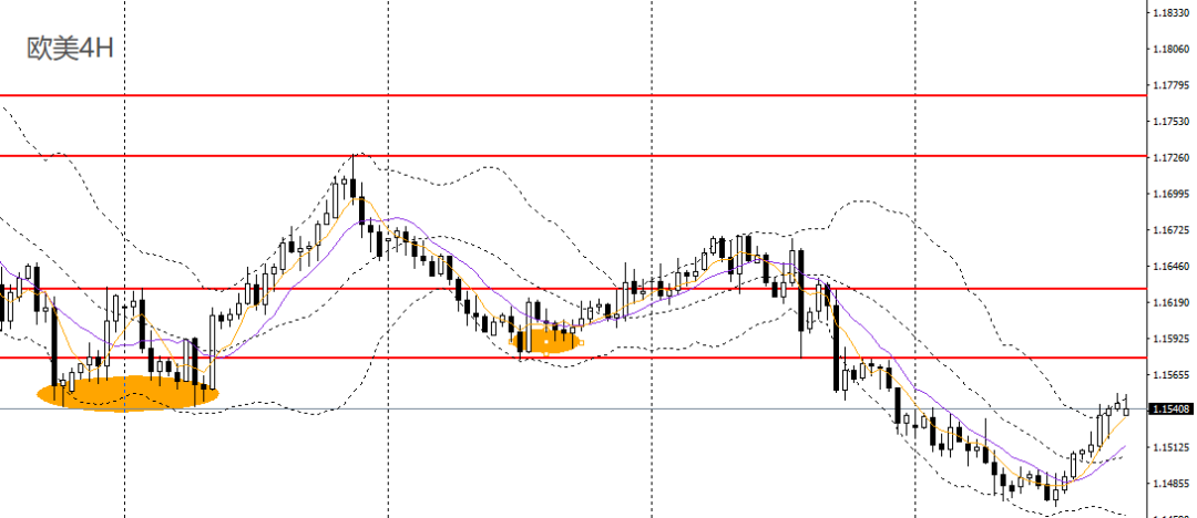欧美昨日收长阳柱,日线RSI小幅回升,4小时上探1.1530-1.1550压力带,1.1530附近企稳可维持低多思路,后市可继续看多至1.1570,1.16。